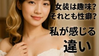 女装 楽しみ 女装は趣味?それとも性癖?:私が感じる違い 女装で胸が高鳴るとき、それって“ただの趣味”?それとも“隠れた性癖”?中学生・高校生の頃から抱えてきた戸惑いと安心の記憶を、Seikoがやさしく語ります。自分を責めずに、自分を好きになれるヒントが見つかる一記事です。 女装 楽しみ