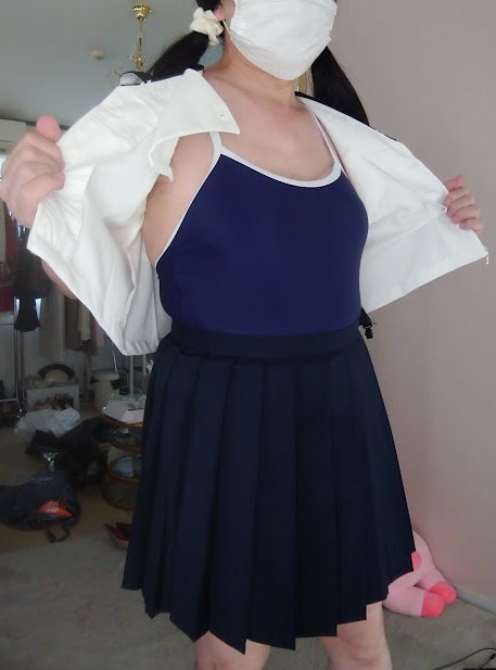 ※お腹の周りが見苦しいので、制服のスカートでごまかしています💦